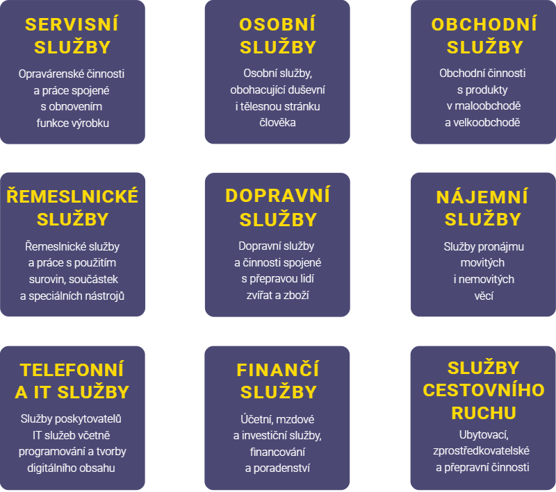 Služby v České republice rozdělujeme podle TYPU do devíti hlavních kategorií: