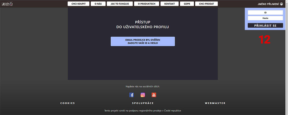 Zde vložíte vaše ID a heslo (12). Doporučujeme použít ověřenou pomůcku, s kopírováním a vložením ID a hesla z textového souboru, kde si vaše údaje nejdříve napíšete a zkontrolujete.